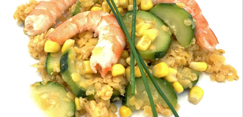 SALADE CREVETTES MAÏS LENTILLES