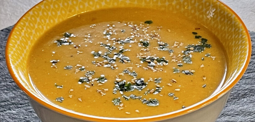 Avant de manger la galette, que diriez-vous d’une soupe équilibrée et originale pour un diner hivernal idéal ? Cette soupe aux saveurs épicées et douces à la fois réchauffe et réconforte ! Facile et rapide à réaliser, ce velouté nous fait voyager et plaira à toute la famille !Bon, pour une fois les ingrédients du placard ne suffiront pas, mais vous avez tout pour réaliser cette recette et vous faire plaisir !